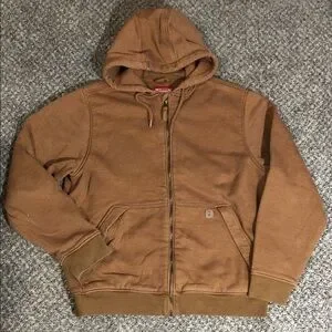 Comfortable and versatile hoodie jacket. Ideal for layering and casual wear. Thick and heavy. Small stain on sleeve.
