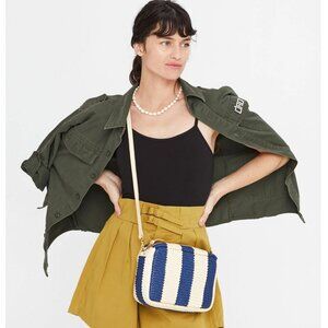 LIKE NEW Clare V. Marisol in Indigo & Cream Woven Racing Stripes