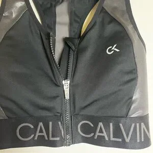 This sleek and stylish Calvin Klein sports bra features a functional front zipper closure for easy on and off, making it a great addition to your activewear collection. Perfect for medium-impact workouts or as a comfortable athleisure piece.