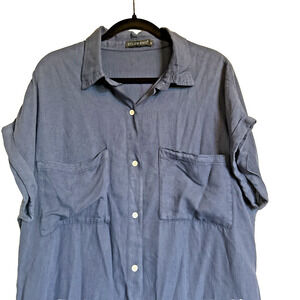 Zilcremo Chambray Shirt Dress XL Button Down Tunic Casual Denim Blue Women's