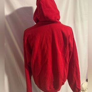 EUC Red women’s hooded sweatshirt with cuffed wrist’s & bottom, kangaroo pockets & Dachshunds doing poses