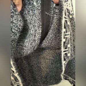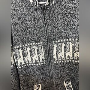 Originally purchased in Peru. Cozy gray and white hooded sweater featuring a charming giraffe pattern. Perfect for casual wear.