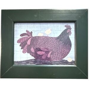 Vintage Warren Kimble Framed Print Pig Mama Chicken Chicks Folk Art Green
