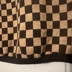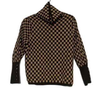 Gabby Isabella Women's Funnel Neck Check Pullover Long Sleeve Button Sweater XS