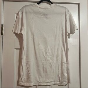 DESCRIPTION: A high quality white top is a closet staple! Standard neckline with blue embroidered logo. No indication of men's/women's, however a great neutral to any closet!