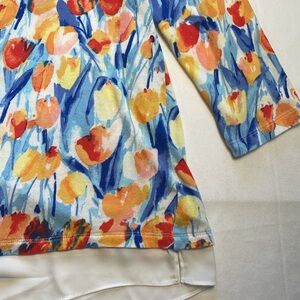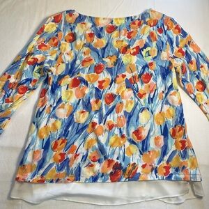 Talbots Tulip Floral Watercolor Artsy 3/4 Sleeve Lightweight Sweater Boatneck M