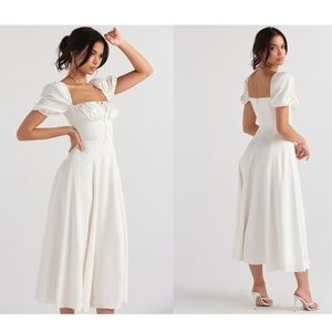 HOUSE OF CB 'Tallulah' White Puff Sleeve Midi Sundress /Size XL or L+