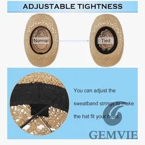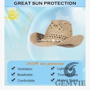 GEMVIE Turquoise Straw Cowboy Hat for Men Women Summer Western Cowgirl Hat Woven Hollow Out Wide Brim Hat rodeo