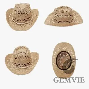 Cowboy Hat Women Summer Western Cowgirl Woven Hollow Out Wide Brim Hat rodeo
