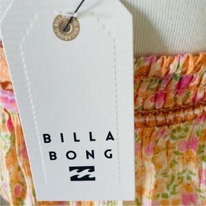 Chic sundress with a flowing silhouette by Billabong. Features a peach and cream pattern. Perfect for sunny days. NEW WITH TAGS!