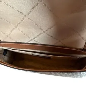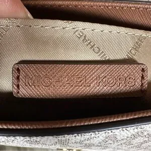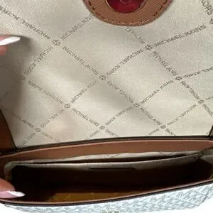 Stylish and versatile, this Michael Kors crossbody bag in beige is perfect for any occasion. The elegant design features the iconic MK logo, making it a must-have accessory.