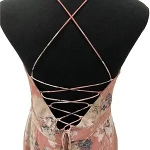 The Marissa Dress in mauve is a figure-hugging dress with a lace-up back and front side slit. It features a center back zipper and full lining with little to no stretch. The bust can be adjusted with the lace-up back. Runs small.