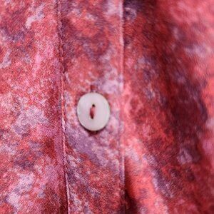• Features: pointed collar; button-front closure; long sleeves with elastic cuffs; shirring detail along front seams, back seams, and back yoke