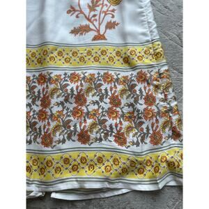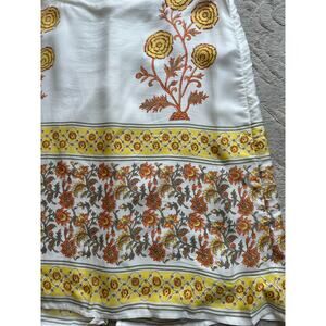 Elevate your wardrobe with this gorgeous J.Crew Sunset Rose Block Print skirt (style CK535). Inspired by vintage scarf prints, this knee-length skirt features a warm floral design in yellow, orange, and earthy tones on a soft ivory base.