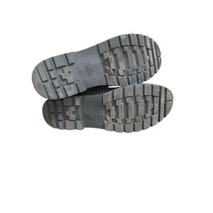 These are a pair of pre-owned Justice women's black winter boots, size 9. They feature a faux fur cuff and a black upper adorned with small, sparkling embellishments. The boots have a lace-up closure with silver-toned D-ring eyelets and a sturdy, lugged sole for traction. Visible signs of wear include some dirt on the soles and minor scuffs on the upper.