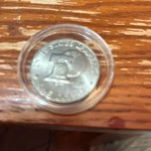 This collectible Eisenhower Dollar Coin features a classic silver tone. Securely encased for display and protection.