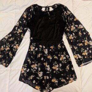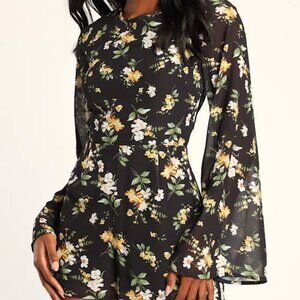 Lulus Poised And Playful Black Floral Long Sleeve Backless Romper - Size M