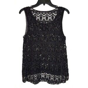 Ecote Urban Outfitters Women's Black Tank Top Cami Crochet Lace Studded Boho
