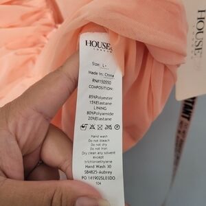 House of CB Peach Aubrey Gathered Mesh Mini Skirt NWT Size L+