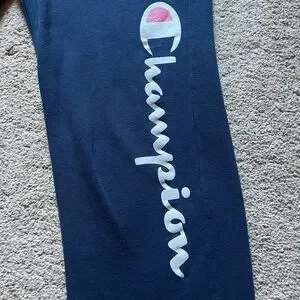 Stylish Champion joggers for kids. Dark blue with bold logo design. Perfect for casual wear.