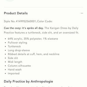 New with tags Anthropologie Daily Practice Karigan midi sweater dress turtleneck edition in blue. Size XS. Runs large.