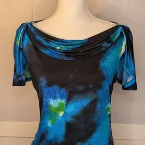Blue green swirl top