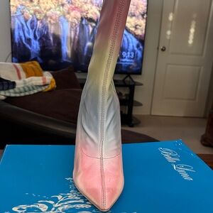 Elevate your style with Bella Luna's multicolor heeled boots. These stunning boots feature a beautiful blend of pink, blue, and yellow, perfect for making a bold fashion statement.