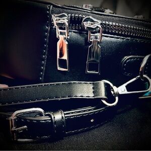Betsey Johnson Black Heart Bag Charm w Black & Silver Unbranded Rock Crossbody