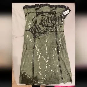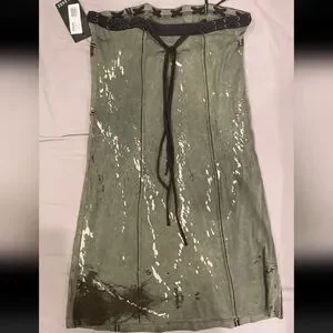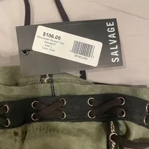 Stylish SALVAGE strapless dress in a unique green shade. Perfect for a bold, fashionable look. Originally $106