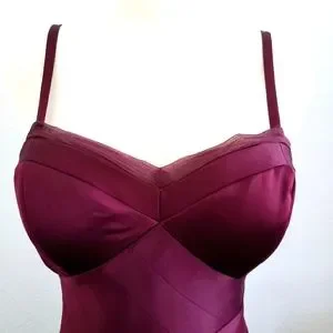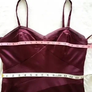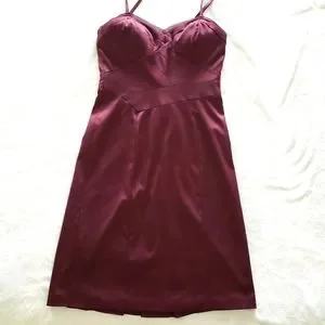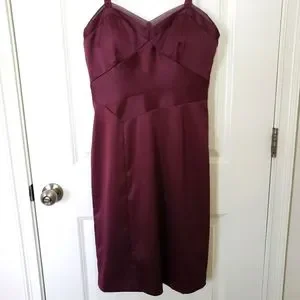 MAX & CLEO Burgundy Satin Strappy Bodycon Sleeveless Knee Length Dress--EUC--8
