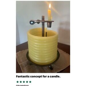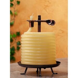 Ingenious design is paired with charming style to cast a cozy glow anywhere in your home. The 100% beeswax candle coil is fed in small increments through the candle clip; simply advance more candle as it burns. A three-inch section burns for approximately an hour, while the smart design ensures a better use of wax than traditional shapes. The copper-finish plate and clip bring a warm touch to your home. Refills are also available.