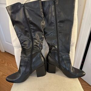 Step out in style with these elegant black knee-high boots. Perfect for any occasion, these boots offer both comfort and sophistication.