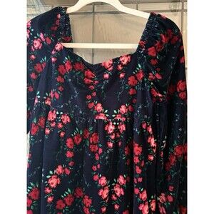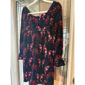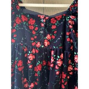 Jane and Jack Size 16 Velvet Floral Mini Dress Navy Red Roses Romantic Cottagecore