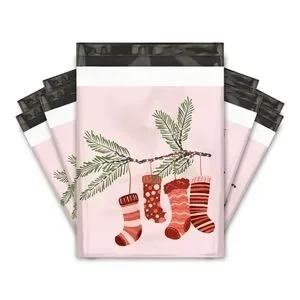 10x13 Festive Stockings Designer Poly Mailers Shipping Envelopes Premium Printed Set of 25 Bags