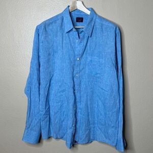 Untuckit Shirt Mens XXL Teal Blue Button Up Long Sleeve Linen Pocket Casual