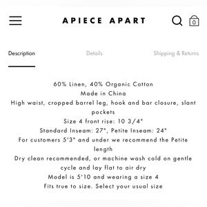 Apiece Apart Bari Crop Trouser in Cream