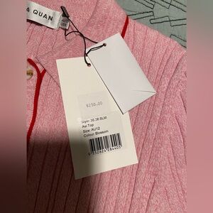 In pristine, unworn condition with no flaws. Such a cute ribbed sweater top with a button front and red trim. Fits a S -M