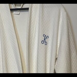 Pottery Barn White Waffle Knit Cotton Robe Monogrammed “K” Size M/L