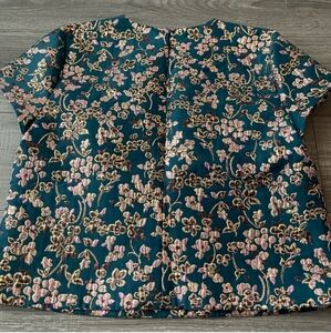 Collection Cherry Blossom jacquard top in beautiful deep teal with gold metallic threads.