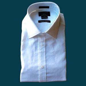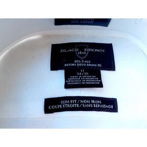 Black Brown 1826 Slim Fit Non Iron 100% Cotton Mens White Dress Shirt NWT Size 17 34/35