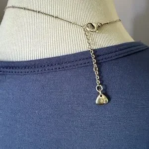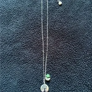 Pretty Silver tone chain with tree of life pendant, green bead, and bird. Has tiny cubic zirconia near tree.