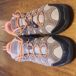 ANODYNE BROWN AND ORANGE HIKING SHOES SZ 10.5