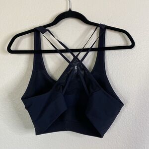 Experience comfort and style with this black strappy sports bra. Perfect for workouts or casual wear.