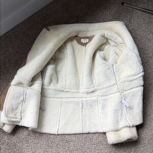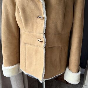 LOFT Faux Fur and Suede like Fabric Cream and Tan Jacket. Size 12 Soft Warm