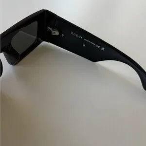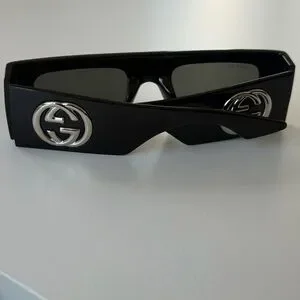 Elegant black sunglasses with Gucci branding. Ideal for a modern look.