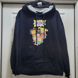 Rugrats Nickelodeon Hooded Sweatshirt Faux Sherpa Hood Black Men's Large