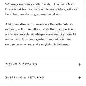 - Where grace meets craftsmanship. The Liana Maxi Dress is cut from intricate white embroidery, with soft floral textures dancing across the fabric.