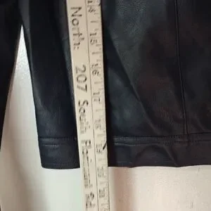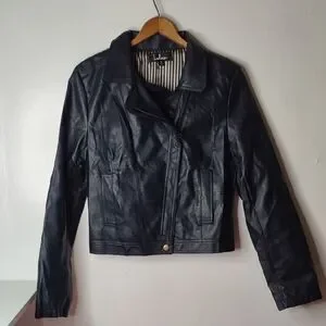 Chic and versatile leather jacket. Features a sleek design. Ideal for any outfit.