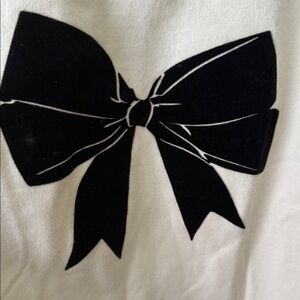 Chic cream sweater featuring a striking black bow. Perfect blend of comfort and style.