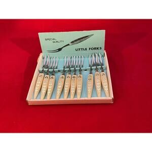 Relish and Hors D’oeuvre Forks Vintage set of 10, Two-Prong Little Forks.